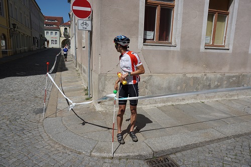 Am Anfang des bergigen Teiles der zweiten Runde merkte ich deutlich wie meine Kraft nachließ, sodass ich meine Radgruppe ziehen lassen musste. Ich versuchte mir mit meiner dürftigen Verpflegung Abhilfe zu verschaffen, was eher mäßig gelang. So trudelte ich eher schlecht als recht Richtung Kamenz zurück. Als ich am Pflaster der Innenstadt wieder ankam machte sich das volle Ausmaß meiner fehlenden Verpflegung bemerkbar. Ich hatte nicht einmal mehr die Kraft den kleinen Anstieg bis zum Wechselgarten zu bewältigen. Als einer der Helfer sich nach meinem Befinden erkundigte sah ich ein, dass es keinen Sinn mehr hatte weiter zu machen. Ich klickte meine Schuhe aus und stürzte beim Absteigen sogar noch über mein Rad. Sofort war ein Sanitäter bei mir und ich bekam etwas zu trinken.