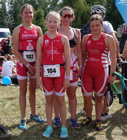 ... denn an diesem Tag fuhren Hannah, Marleen, Lydia und ich mit unseren Familien in die Tschechei zum Cross-Triathlon. Als wir am Kristina-See in Hradek ankamen, warteten wir noch auf Lydia. Dann sind wir zum Check-Inn gegangen und breiteten unsere Decken aus.