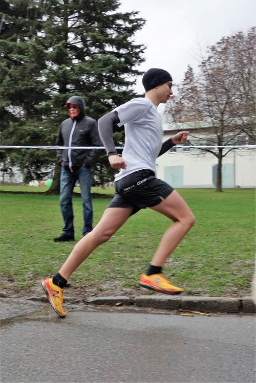Die Kleinen sind jeweils 200m geschwommen und 1km gelaufen, die Schüler A sind 400m geschwommen und 2,5km gelaufen. Die Riesen mussten das Doppelte von den Mittleren machen.