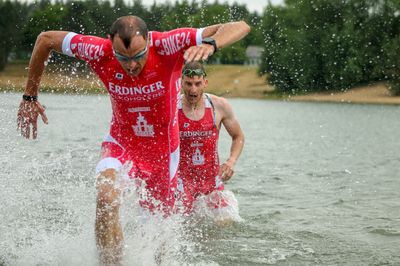Und So begaben sich die Wettkämpfer nach ganz verschiedenen warm-up-Distanzen an Land oder im Wasser, wie gewohnt 2 Mal ins Rennen. Nicht das erste Mal, aber bisher seltener wurden die Rennen wie folgt durchgeführt: Lauf: 1,3km - Schwimmen: 500m - Lauf: 1,3km.
