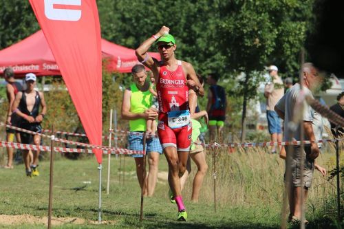 Halb taumelnd ging es von der Waagerechten in die Senkrechte beziehungsweise auf das Zweirad meines Vertrauens. Von Anfang an konnte ich ganz guten Druck aufs Pedalwerk bringen und einen nach dem anderen überholen. 40 Kilometer in 58 Minuten: läuft. Jan Frodeno scheint Recht zu haben – der freut sich nämlich immer über heiße Temperaturen und den damit verbundenen geringeren Windwiderständen. Ich freue mich wenn dann über Letzteres, denn der Dauerfön von vorn war extrem kräfteraubend und leider hat man dies erst zeitverzögert zu spüren bekommen.
