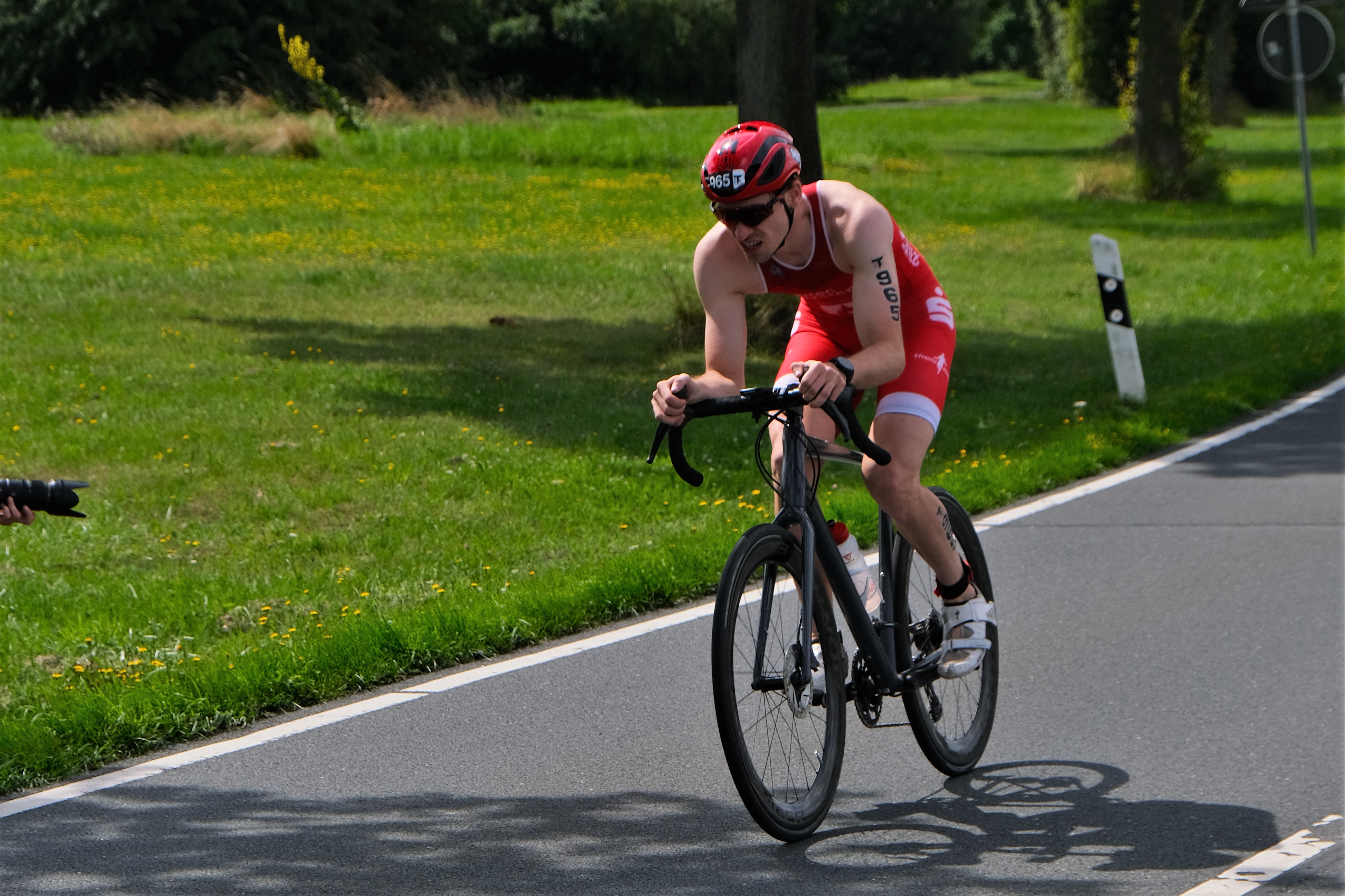 Robert im Zeitfahrmodus, keine Gruppe, kein Windschatten (Foto Andrea Gießmann/ Triathlon Team Thürigen)