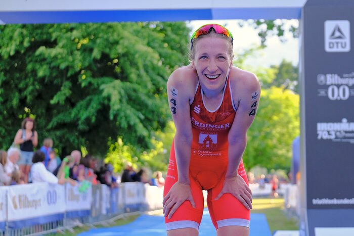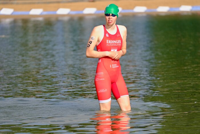 Sophie kann heute nicht an ihre gewohnte Schwimmperformance anknüpfen. Sie wäre sicherlich gerne ein bis zwei Gruppen weiter vorne gewesen, so wie in der Vergangenheit. Das Vollzeitstudium bei der Bundespolizei lässt nicht mehr so hohe Umfänge zu und die Konkurrenz schläft halt nicht. Sie fährt in der dritten Verfolgergruppe ohne Probleme mit und tut ihren Teil der Arbeit. In der eher ungeliebten dritten Disziplin macht sie einen kämpferischen Eindruck und fightet um jeden Platz. Sie kommt total ausgepumpt auf Rang 39 ins Ziel.