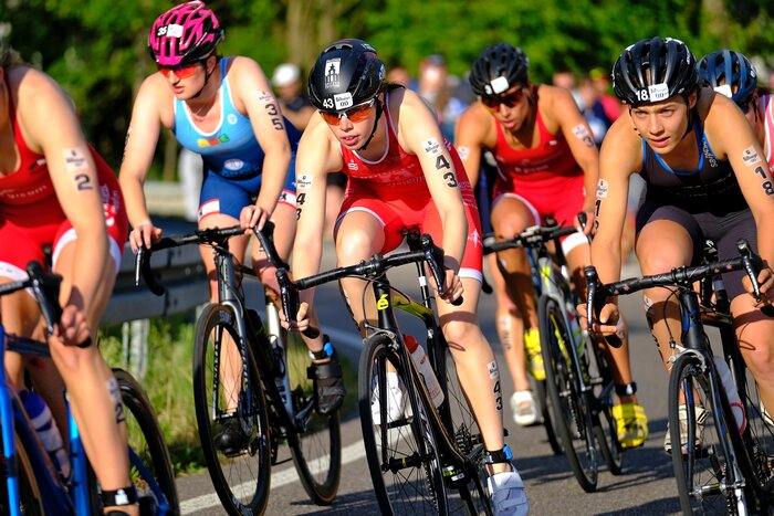 Die ersten Athletinnen springen auf ihr Rennrad. Darunter sind Namen, die man hier erwartet, z.B. die beiden deutschen Olympionikinnen Laura Lindemann und Anabell Knoll. Als erste Athletin im TV-Einteiler kommt Pauline um die Ecke. Sie erwischt ein grandioses Schwimmen und steigt als achte Athletin aus dem Hardtsee. Die kleine Spitzengruppe mit den beiden Olympionikinnen verpasst sie, wenn auch haarscharf. Diese ist sieben Athletinnen groß, die ordentlich auf die Kurbeln drücken und richtig Rennen fahren. Am Ende fahren sie 80 Sekunden schneller als die nächste Gruppe. M.a.W. der Vorsprung ist so groß, dass die ersten sieben Plätze an Athletinnen aus dieser Gruppe gehen.