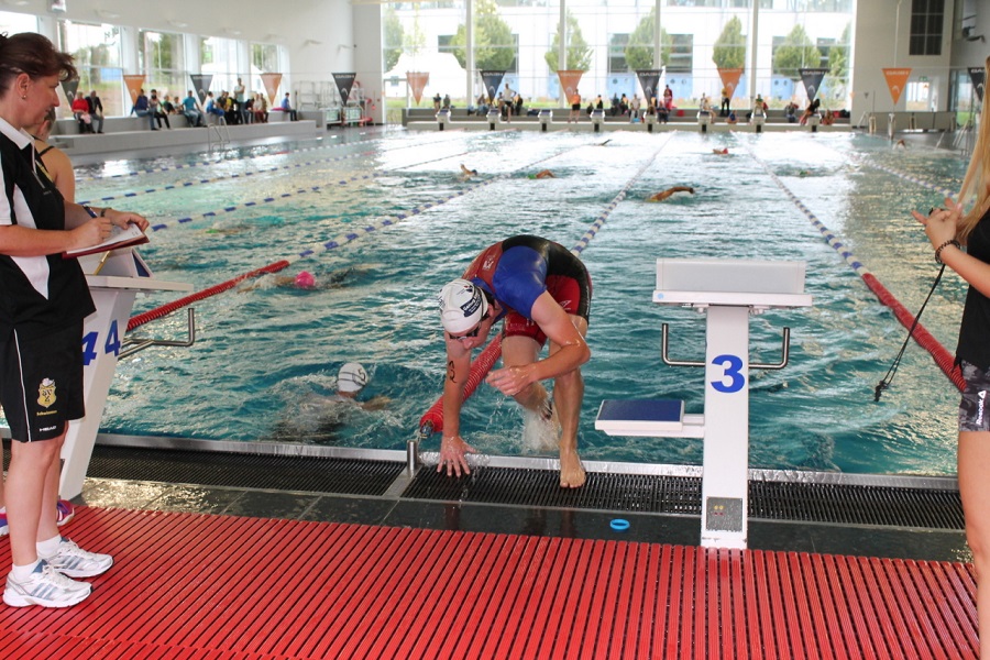 In einer sehr beeindruckenden und schön anzusehenden Schwimmhalle im Zwickauer Süden wird der Start, der an diesem Tage statt findenden Wettbewerbe, vollzogen. Der Veranstalter (der gleiche wie beim Koberbachtal-Triathlon) hat an diesem Tag das Programm vollgepackt: Halbdistanz, Olympisch, Jedermann, Einsteiger, Kinder… Jeder, der Triathlon will bekommt ihn auch. Wir wollen heute den Landesliga-Sieg 2015 klar machen und sind zu allem entschlossen.