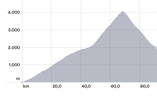 Entsprechend zurückliegender Touren ließ sich für Rennradnutzung eine Anstiegsgeschwindigkeit (in herkömmlichen Höhenlagen) von etwa 600 hm/h annehmen, was zu einer Belastungsdauer im Anstieg von über 7h führen würde, wenn das Rad zudem schwerer und beladener ist. Das eröffnete für die Zeit allein einen voraussichtlichen Flüssigkeitsbedarf von etwa 5 Liter (0,75 Liter/h). Daraufhin hieß es 3 zusätzliche Flaschenhalter mit Adapter zu beschaffen und das Einrichten eines Getränkedepots im Bereich der Halbzeit einzuplanen. Die Kohlenhydratzufuhr sollte über in den Flaschen aufgelöstes Maltodextrin und Oatsnacks erfolgen.