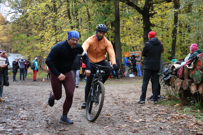 Als erstes haben sich im Anschluss die Kinder in den Wettkampf gestürzt. Sieben tapfere Nachwuchsathlet:innen sind also losgerannt als würde der Kuchen schon bald alle sein. Im Anschluss wurde dann der Wettkampf für die Jugend & Erwachsenen gestartet. Finn, Peter, Christian und co. sind losgehämmert, dass spätestens jetzt klar war: das wird hier mehr als nur ‘ne Trainingsoffensive - das ist der härteste Wettkampf im Jahr! (ich neige zu Übertreibungen) Ich habe an Position 8 bis 10 (keine genaue Ahnung, war ganzschön grau..) an Max übergeben. Er hat uns dann auf Platz 4 auf dem MTB vorgefahren. Den Abstand nach vorn konnten wir dann bis zum Ende des fröhlichen Miteinanders nicht mehr verringern. War aber auch egal - meine Paradedisziplin folgte dann: Essen. Bis alle im Ziel waren, wurde also das Kuchenbuffet rasiert und zum krönenden Abschluss der Tombola beigewohnt.