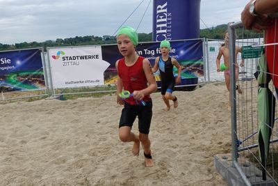 Clara erkämpfte sich 4 Sekunden Vorsprung zu Lydia, den sie im Radfahren auf über eine Minute vergrößerte. Allerdings verlor sie beim Laufen 30 Sekunden. Das hieß am Ende Platz 1 und 2. Marleen kam als Fünfte ins Ziel (Sachsenmeisterschaft: Plätze 1-3).