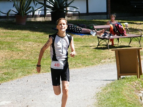 2 Jungen/ 1 Mädchen + 2 Mädchen /1 Junge – absolvierten jetzt die Hatz im A-B-C- System – immer in der Reihenfolge Schwimmen – Rad – Lauf. Vorsichtshalber hatten sich die Sportler ihre Reihenfolge auf den Handrücken geschrieben. Kommentar von außen: „...siehst du durch?...“; „...nee, aber die müssen's ja wissen!...“ Das völlige Durcheinander hat System! Schon nach dem 1. Durchgang waren die Leipziger vorn und bauten kontinuierlich die Führung aus. 2. war Klingenthal, 3. Riesa und knapp dahinter der Regionalsieger aus Dippoldiswalde/ Altenberg, die sich allerdings Einiges vorgenommen hatten.