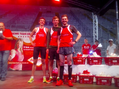 Aber der Reihe nach: Gestartet bin ich dieses Jahr nicht für den TV Dresden sondern für meine Firma, die T-Systems Multimedia Solutions GmbH. Ich hatte mein Fahrrad am Zielstadion abgestellt, das Gepäck abgegeben und den Weg zum Start am Altmarkt zum Einlaufen genutzt. Aufgrund guter Beziehungen konnte ich einen Startplatz im VIP-Bereich ergattern. Punkt 19 Uhr ging es dann los.