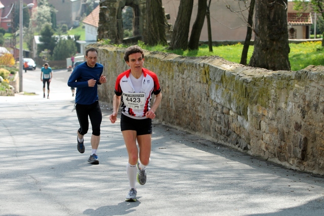 So ging es die ersten Kilometer erstmal gerade bzw. leicht bergab und die gewünschte Marathon-Pace lies sich gut halten. Allmählich kam auch die Sonne raus und durch mein langes Oberteil breitete sich eine unangenehme Wärme in meinem Körper aus (Notiz an mich selbst: Ärmlinge sind auch beim Laufen eine Option). Dann der 1. von 3 längeren Anstiegen. Erwartungsgemäß ging die Pace natürlich runter. So zog die Landschaft dann schön vorbei, da der Lauf hier wirklich einiges zu bieten hat. Nachdem der 1. Hügel überwunden war, ging es wie eine Rakete bergab, was mir besonders liegt, zumindest kann ich hier wieder Einige einholen, bergauf zahle ich dann aber leider durch mein höheres Wettkampfgewicht wieder Tribut.