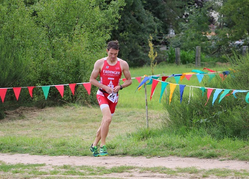 Vom Rennen an sich ist schnell berichtet: Nach dem Startschuss schwammen alle Sportlerinnen und Sportler ambitioniert los. Es waren zwei Runden inklusive Landgang, bei dem sich die Sportler Taktikanweisung von den mitgereisten Trainern (meist: "Schneller!") abholten und die Fans abklatschten, im schönen Steinbruch Louise zu absolvieren. In der Wechselzone war diesmal nicht viel zu tun: Brille und Kappe schön zusammen legen und ab zurück in die Reisetasche, Laufschuhe anziehen, Startnummer anlegen und ab die Post!