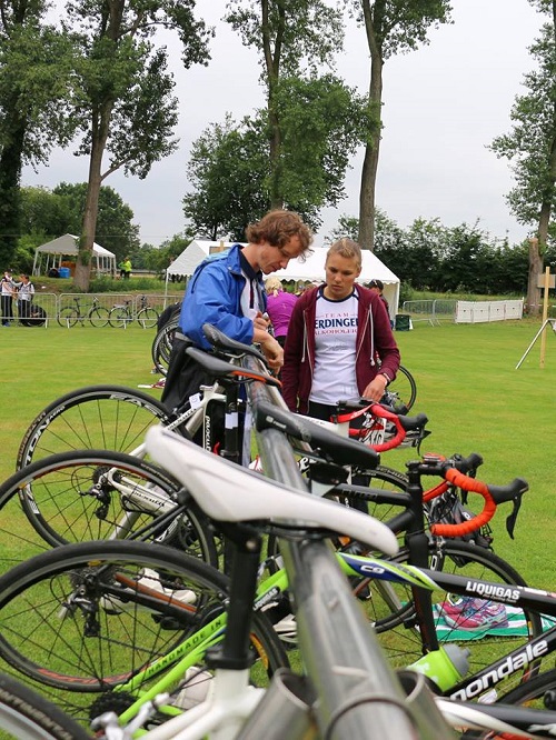 Da es sich bei den Teilnehmern ausschließlich um absolute „Triathlonauskenner“ handelt, war das Einchecken am Wettkampfort eine reine Pflichtaufgabe („Jetzt habe ich den Helm vergessen…“, „Hat jemand Babypuder dabei?“, „Wo sind meine Schuhgummis?“) und schnell erledigt.
