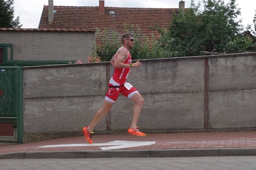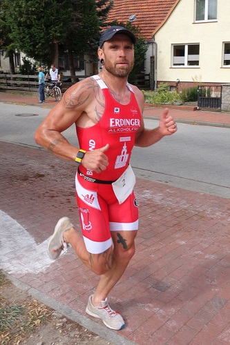 Wenige Minuten später fiel der Startschuss zum Männerrennen. 1,5km in der Havel bzw. einem Seitenarm entlang der Altstadt fühlten sich mit Neo gut an, jedenfalls bei mir. Als 3. Schwimmer wechselte ich auf den 2. Platz und begann den Versuch, die Verfolger auf der Radstrecke auf Abstand zu halten. Es gelang, und ich war froh, mich aus der einsetzenden Grüppchenbildung auf der Radstrecke galant heraushalten zu können. In Führung lief ich los. Mein Vorsprung von etwa anderthalb Minuten schmolz dahin, als das Geraer Geschoss Theo und Nico durchstarteten. Aber Martin und Jörg sowie weithergereiste Fans feuerten an und gaben Zeiten durch. Auf diese Art genötigt, reichte eine gute halben Minute Vorsprung für den Sieg. Mit Nico als 3. (schnellste Laufzeit!) kurz hinter Theo, Grahlo und Philipp-Johannes als 7. und 8. sowie last Action Hero Totten auf Platz 37 ging der Plan mal wieder ganz nach oben aufs Treppchen zu steigen auf.