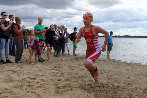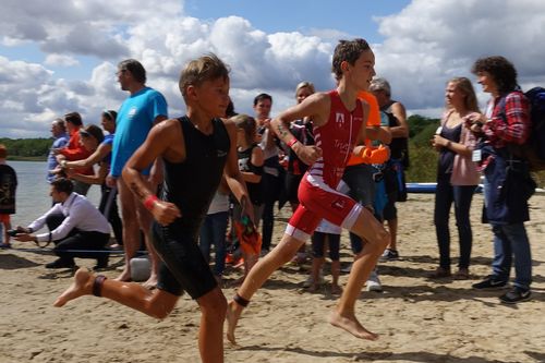 Beim Knappenman gab es dann kaum Irritationen. Nunmehr auf Rennrädern unterwegs, flutschte der Wettkampf dahin und nach dem Regen, den die Langstreckler am Vortag noch erleiden mussten, erlebten die Kinder angenehmes Triathlonwetter und eine tolle Kulisse.