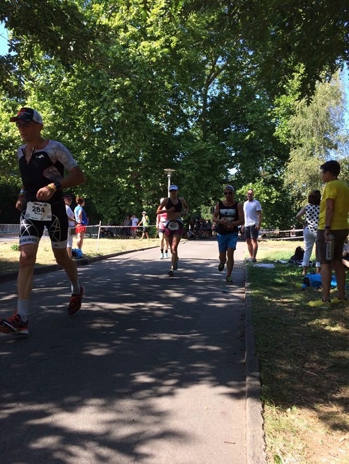 Bis hierhin lief alles relativ reibungslos und ohne größere Probleme – bis auf eine Ausnahme: mein Magen/Bauch machte mir schon vom Schwimmen an mit kleineren bis mittelschweren Krämpfen Probleme. Meine Hoffnung, dass sie mit dem Verlassen der Aeroposition verschwinden, erfüllte sich leider nicht. So wurde die erste von 4 Laufrunden leider schon teilweise zum Spaziergang mit dem Versuch irgendwie eine Besserung zu erzielen. Ein negativer Nebeneffekt war zudem, dass ich in der ersten Runde kaum bzw. keine Energie aufgenommen habe. So wandelte sich das Bauchproblem schließlich in ein Energieproblem, denn die Krämpfe lösten sich zum Glück irgendwann. Somit war zumindest ein normales Laufen möglich, wenn auch nicht in der Geschwindigkeit wie geplant. Marcos und Hendriks Anfeuerungsrufe und ein anschließender Blick auf die Uhr wandelten schließlich auch meine Gefühlslage von „Hauptsache durchkommen“ in „Mensch, das könnte noch eine gute Zeit werden“. Ich musste nur im angeschlagenen „Tempo“ durchlaufen. Mit diesem Mantra gingen auch die restlichen 3 Runden durch die Züricher Innenstadt noch rum.