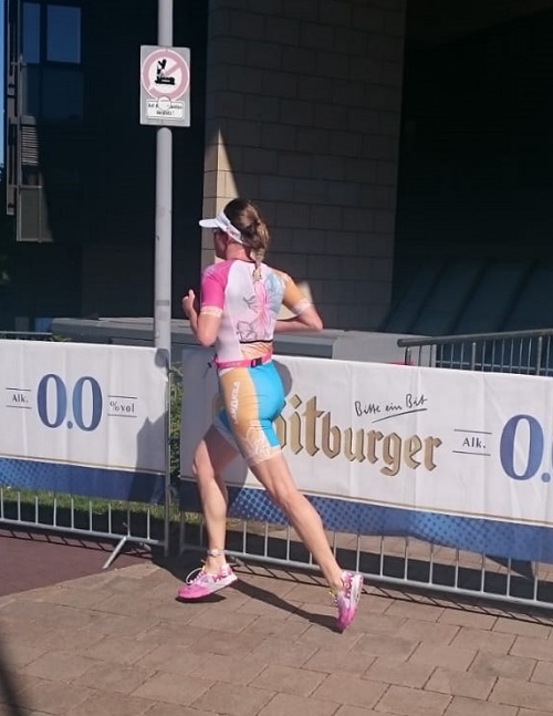 Auf dem Rückweg in die Stadt war ich schon gedanklich in meinen Laufschuhen. Bloß nicht wieder „abkacken“. Der Wechsel gelang gut, die Laufbeine fühlten sich gut an, also auf geht’s. Ich hatte zu diesem Zeitpunkt des Rennens keinen Überblick auf welchem Platz ich in meiner AK lag. Immer wieder angefeuert durch meinen Freund Thomas ging es 2 Runden am Hafen und am Landtag vorbei. Ähnlich wie beim Citytriathlon in Dresden, lief das Laufen rund. Ich überholte ein paar Mädels und wurde nur von einer deutlich jüngeren Konkurrentin eingeholt. Im Ziel angekommen war ich mir allerdings sicher, dass es nicht gereicht hat. Dafür war die Endzeit von 1h19min einfach zu langsam (bedingt durch die lange Wechselzone). Also auschecken und warten, und hoffen, dass es nicht wieder Platz 4 wie im letzten Jahr in Köln war. Nach knapp einer Stunde gab es immer noch keine Ergebnisse. Mein Freund kam dann auf die Idee, online bei Mikatiming nachzuschauen. Und dort stand es schwarz auf weiß 3.Platz. Natürlich schossen gleich ein paar Freudentränen in die Augen. Die Siegerehrung genoss ich dann in vollen Zügen, und mit der Bronzemedaille ging es dann überglücklich zurück nach Dresden.