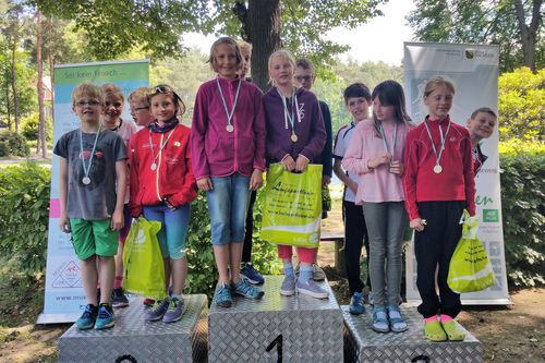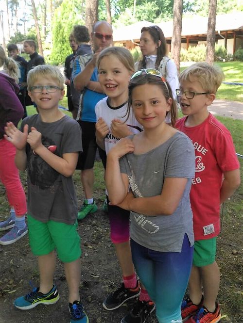 Jetzt kam die Siegerehrung. In der Einzelwertung belegte in unserer Altersklasse Marleen den 1., Hannah den 2. und ich den 3. Platz. Bei den Jungs wurde Adam der 1.. Finn wurde 7. und Stan 8..