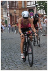 Schneller Wechsel aufs Rad und erst mal entspannt essen. Das klappte sehr gut, da man zunächst fast nur geradeaus nach Frankfurt rein rollt. Durch das Abfahren der Radstrecke mit dem Auto kannte ich zumindest die wichtigsten Passagen der Strecke. Die ca. 500m lange Kopfsteinpflasterpassage genannt „The Hell“ verdient seinen Namen zu recht. Danke an dieser Stelle an Jan und Bernd vom Radhaus Hochstadt direkt an der Kopfsteinpflasterpassage, die am Tag vor dem Start nochmal schnell und sehr unkompliziert geholfen haben und wertvolle Tipps gegeben haben. An dieser Stelle kommt es in jedem Jahr zu den meisten Pannen. Und wir reden hier nicht über platte Reifen, sondern über Gabel- und Schalthebelbrüche, abgefallene Schaltgruppen und Bremsen, umherfliegende Flaschen, Luftpumpen, Ersatzschläuche, Powergels etc.