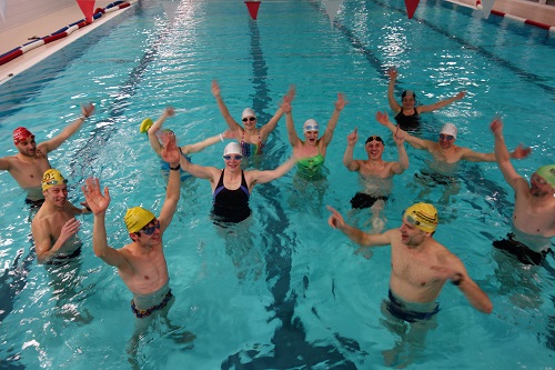 Angekommen ging es sogleich zur Zimmeraufteilung. Was wohl das Alter eines jeden Besuchers damit zu tun hat, wenn er Ü27 ist? Das wissen wahrscheinlich nur die Betroffenen selbst. Also fragt alle anderen, außer mich :-P. Überraschender Weise gab es fast nur Einzelzimmer. Die wenigen, um genau zu sein 4, Doppelzimmer ließen wir für die angereisten Pärchen über. Ich hoffe, René und Daniel haben ihr Zusammensein genossen *zwinker*. Doppel- oder Mehrfachzimmer sind natürlich viel unterhaltsamer und geselliger, aber wir wussten uns zu helfen. Es gab genügend Gemeinschaftsräume, um gesellschaftlich die geschundenen Muskeln abhängen zu lassen und uns über internationale Gepflogenheiten auszutauschen. Zurück zum Tagesablauf. Es ging natürlich sogleich auf zum Schwimmen in Halle 1 mit 25m-Bahnen und herrlich temperierten Wasser. Unsere Trainer: Jörg Bozenhard und Martin Koch waren einsame Spitze. So gab es manchmal ein paar wohlgemeinte Kommentare: „Schlimmer geht es ja eh nicht mehr.“, „Denkt an die Simon’sche Kralle!“ und in einem sehr verzweifelten Tonfall: „Jana, du fährst schon wieder Fahrrad.“ – Ist ja auch das Beste, was es in der sportlichen Welt gibt! Ansonsten wurde mit viel Körpereinsatz versucht uns die Bewegung der Fische beizubringen. Bei einigen konnte man die Groschen förmlich fallen hören.