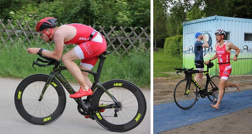 An dieser Stelle hat sich das Wechseltraining gewiss ausgezahlt, denn sowohl der Erste, als auch der zweite Wechsel liefen problemlos. Auf dem Rad ging es sofort gut voran und ich konnte auf den ersten 5km einige Plätze gut machen. Kurz vor der Wende kam mir die Spitzengruppe mit Max, Lukas und Marvin entgegen. Leider gab es nicht nur faire Sportsmänner und so waren es wirklich Einige, die sich nicht an das Windschattenverbot hielten. Platz wäre definitiv genug gewesen, aber scheinbar keinerlei Wille sich an die Regeln zu halten.