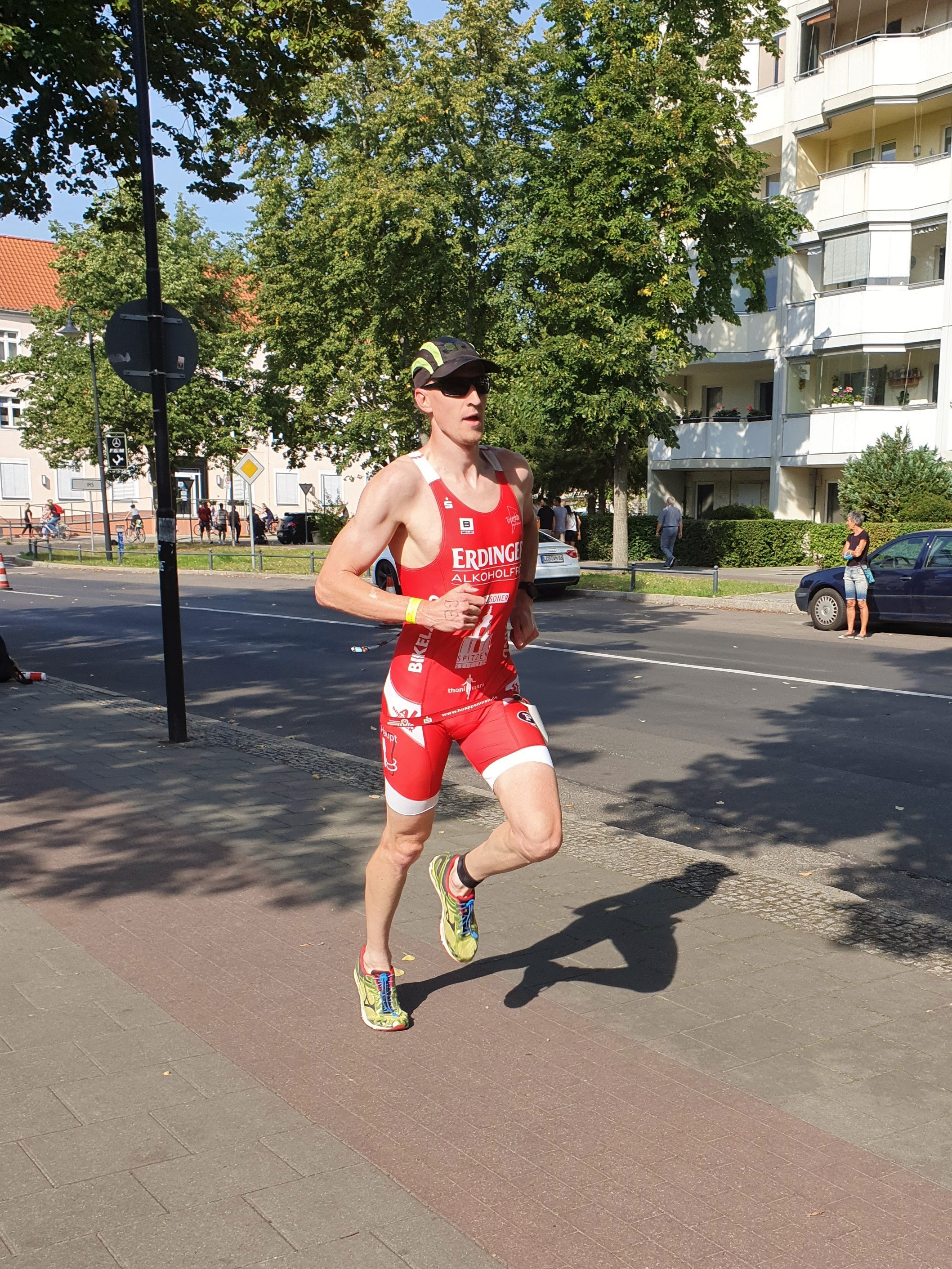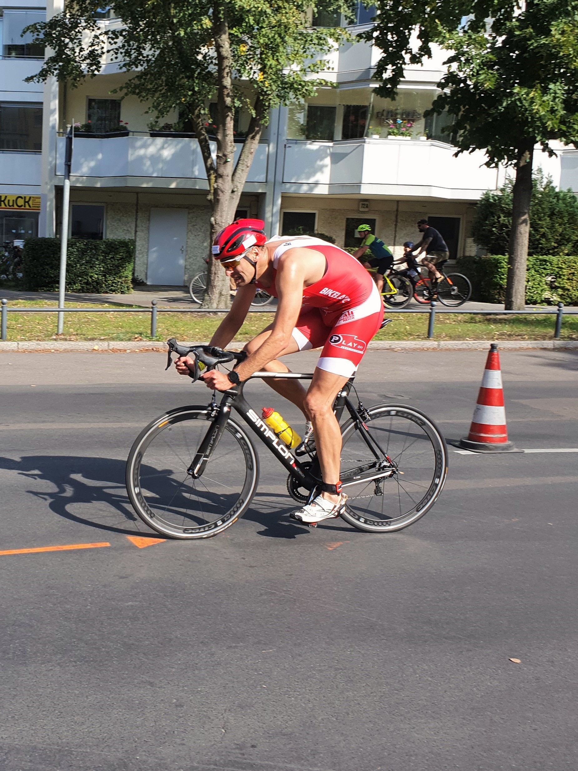 Dank unseres Sponsors Sitec Systems, der die Bundesligateams mit einheitlichen Helmen von Abus ausgestattet hat, konnten wir erstmals mit einheitlichem Kopfschutz unterwegs sein. Nachdem ich in der letzten Welle gestartet war, hatte ich genügend Sportler vor mir auf dem Rad, um nun eine Aufholjagd zu starten. Dank des neuen Helms, einer kurzfristigen Anpassung des Rennrades und guter Beine ging der Plan voll auf. Ich konnte auf der Radstrecke zahlreiche Sportler überholen und freute mich am Ende des Tages über die 9. schnellste Radzeit. Da hat sich der Helm doch bereits bewährt!