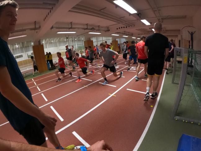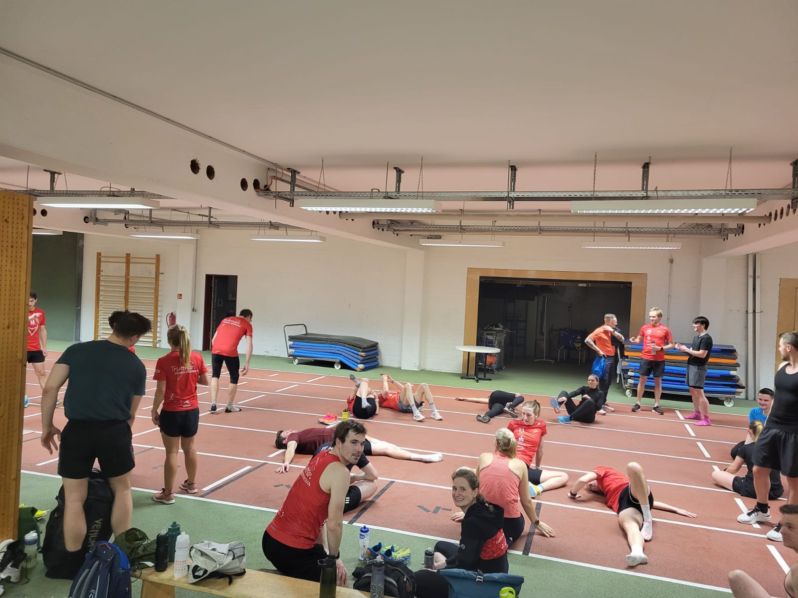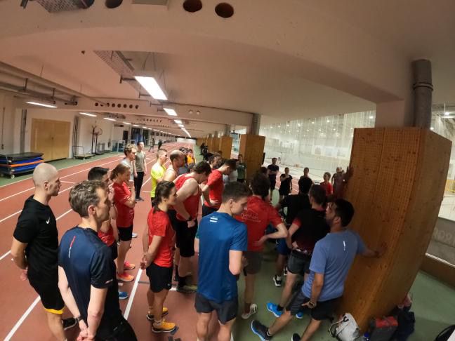 Ende Januar, es ist Dienstag kurz vor 19 Uhr - die DSC Laufhalle leert sich langsam, auch die Jugend des weltbesten Triathlonvereins läuft gerade aus. Doch halt nein, in einer Ecke tauchen immer mehr rote Punkte auf, gemischt mit vielen anderen Farben. 40 Triathletinnen und Triathleten mit einigen 'Schnuppermitgliedern' scharen sich um Danny und Marco, unsere Trainer.